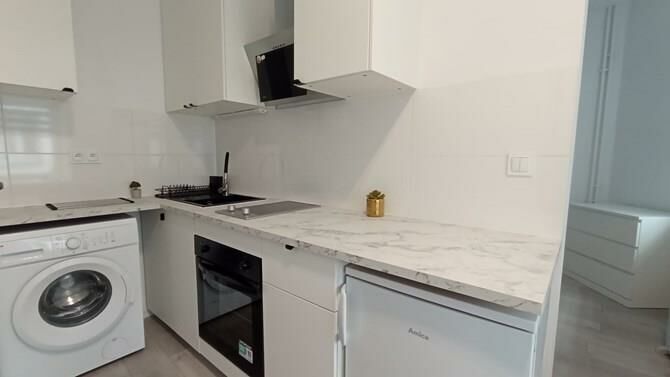 Aneks kuchenny: meble, lodówka, płyta elektryczna, pralka, piekarnik